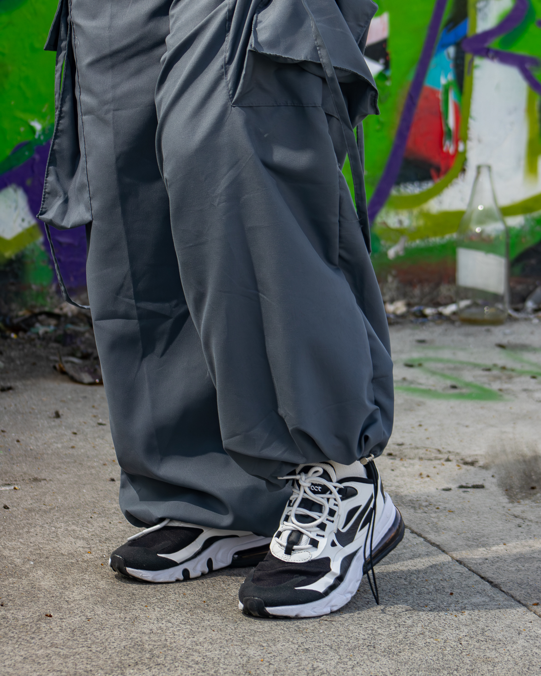Jogger con estructura firme, líneas rectas y bolsillos tácticos.