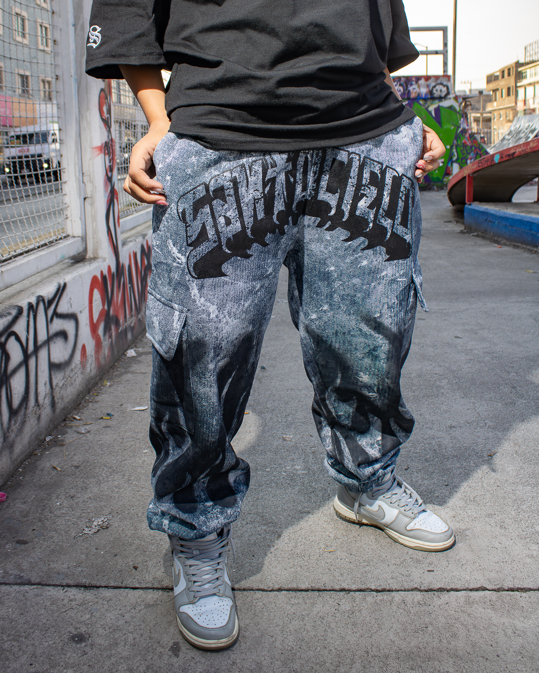 Denim con alma celestial y actitud infernal. Corte relajado, desgastes naturales y bordados inspirados en símbolos de redención.